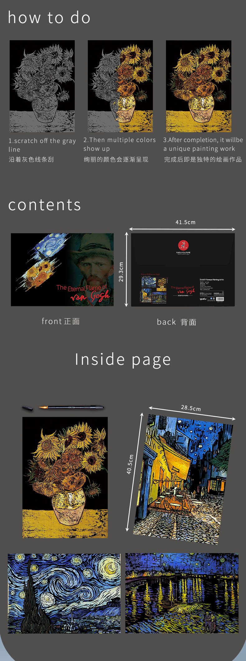 پک ۴تایی تابلو اسکرچ (نقاشی زغالی) آثار ونگوک